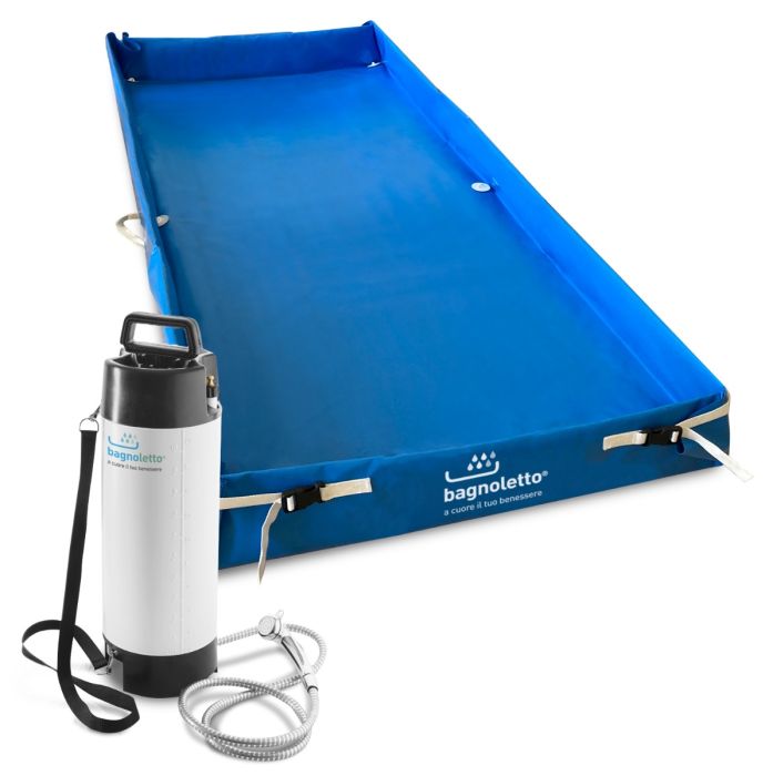 Bagnoletto is the innovative system that provides the pleasure of a real bath. It ensures greater relief, both physically and mentally, safeguarding the primary goal of timely and accurate cleaning. If you take care of a bedridden person, you surely know the importance of physical and psychological well-being and supporting the normal biological functions and the daily care of the body. Even when the patient is not self- sufficient, it is essential to try to keep their hygienic habits unchanged, supporting cleansing and hydration. Bagnoletto is a great alternative to the now discontinued Water Genie.